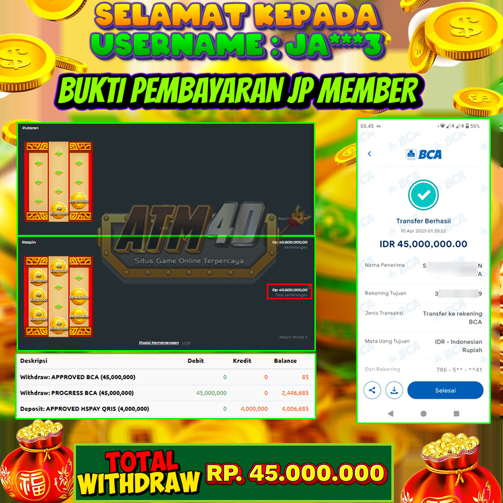 TOTAL KEMENANGAN : RP 45.000.000.-