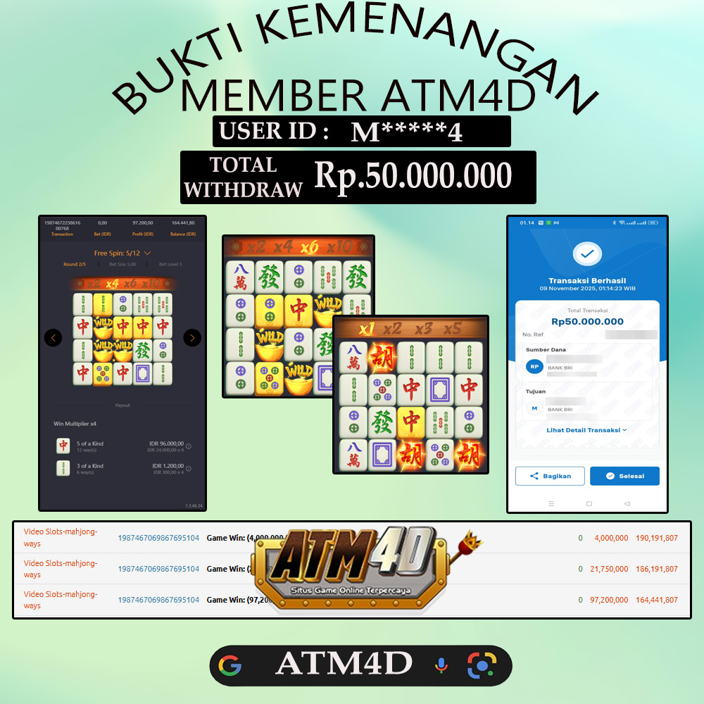 Jangan lewatkan kesempatan untuk meraih kemenangan besar. Daftar sekarang di ATM4D dan rasakan pengalaman bermain slot terbaik yang pernah ada! Putar gulungan, menangkan jackpot, dan jadilah bagian dari komunitas pemain sukses kami!