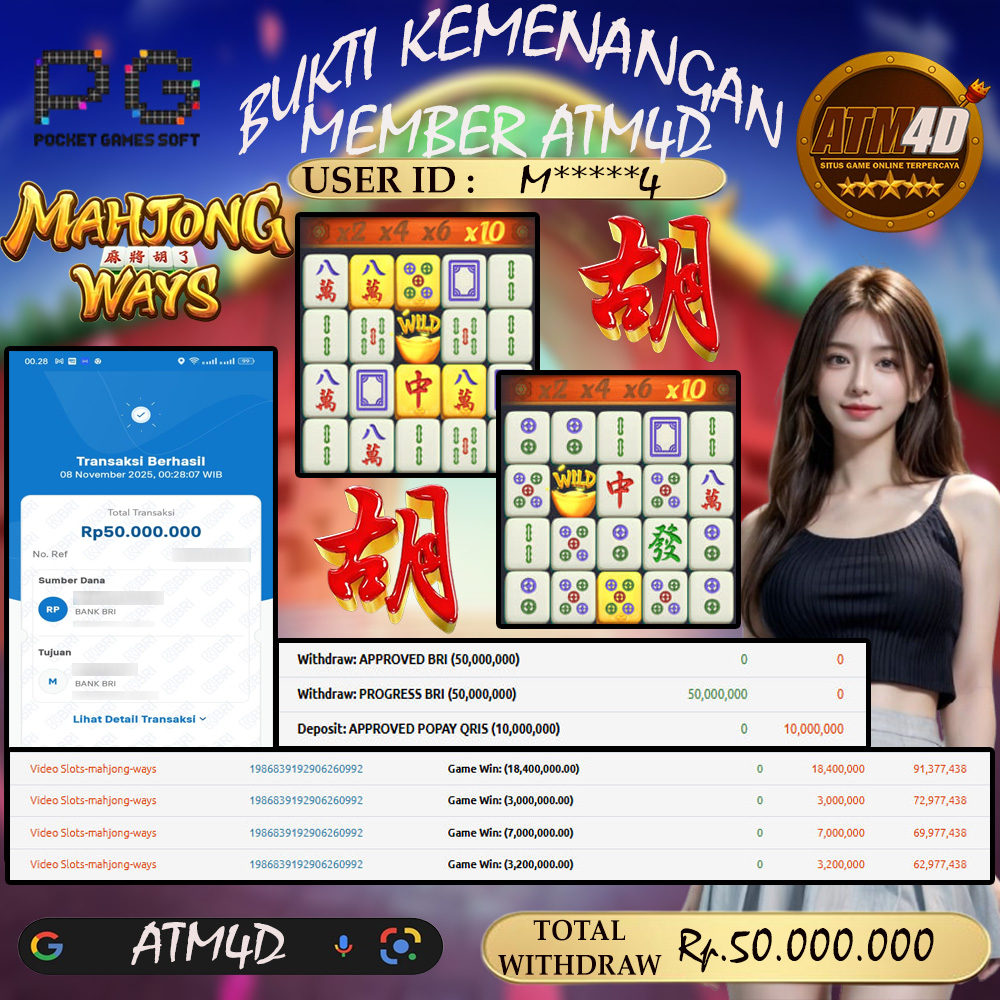 Selamat Kepada Member Yang Berhasil Mendapatkan Jackpot Dipermainan PG SOFT, Berikut Bukti Jackpot Member Di Situs ATM4D