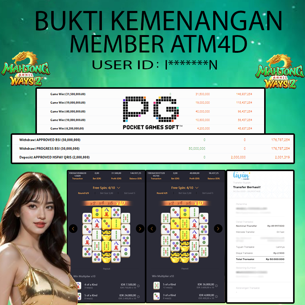 Selamat Kepada Member Yang Berhasil Mendapatkan Jackpot DipermainanPG SOFT, Berikut Bukti Jackpot Member Di Situs ATM4D